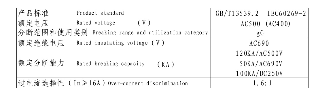 符合GB13539.2、IEC60269-2-1標(biāo)準中的規(guī)定。
