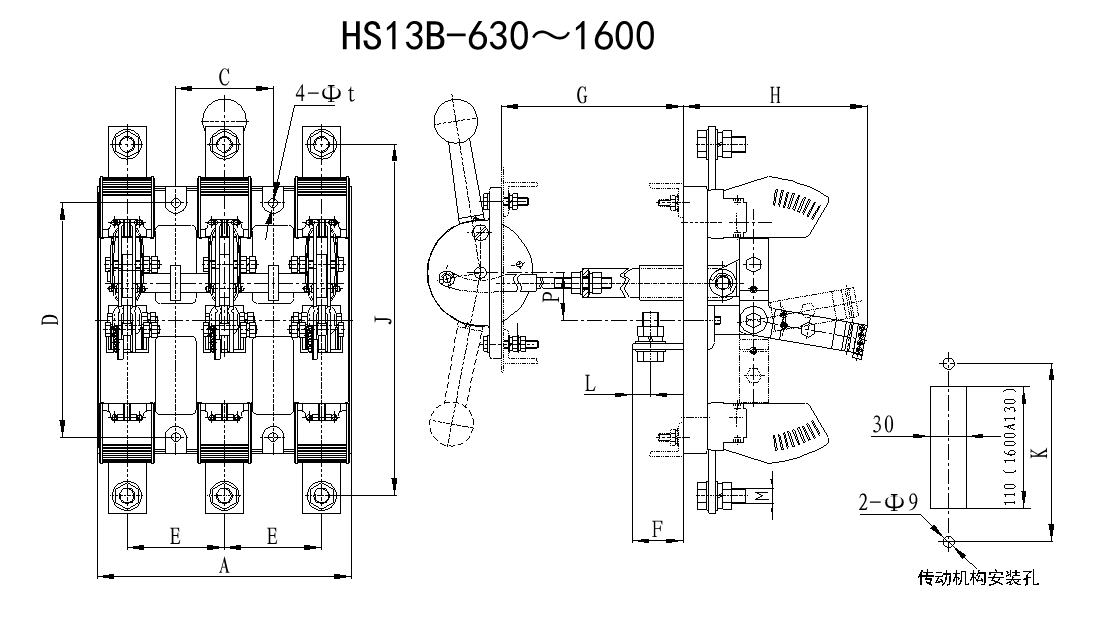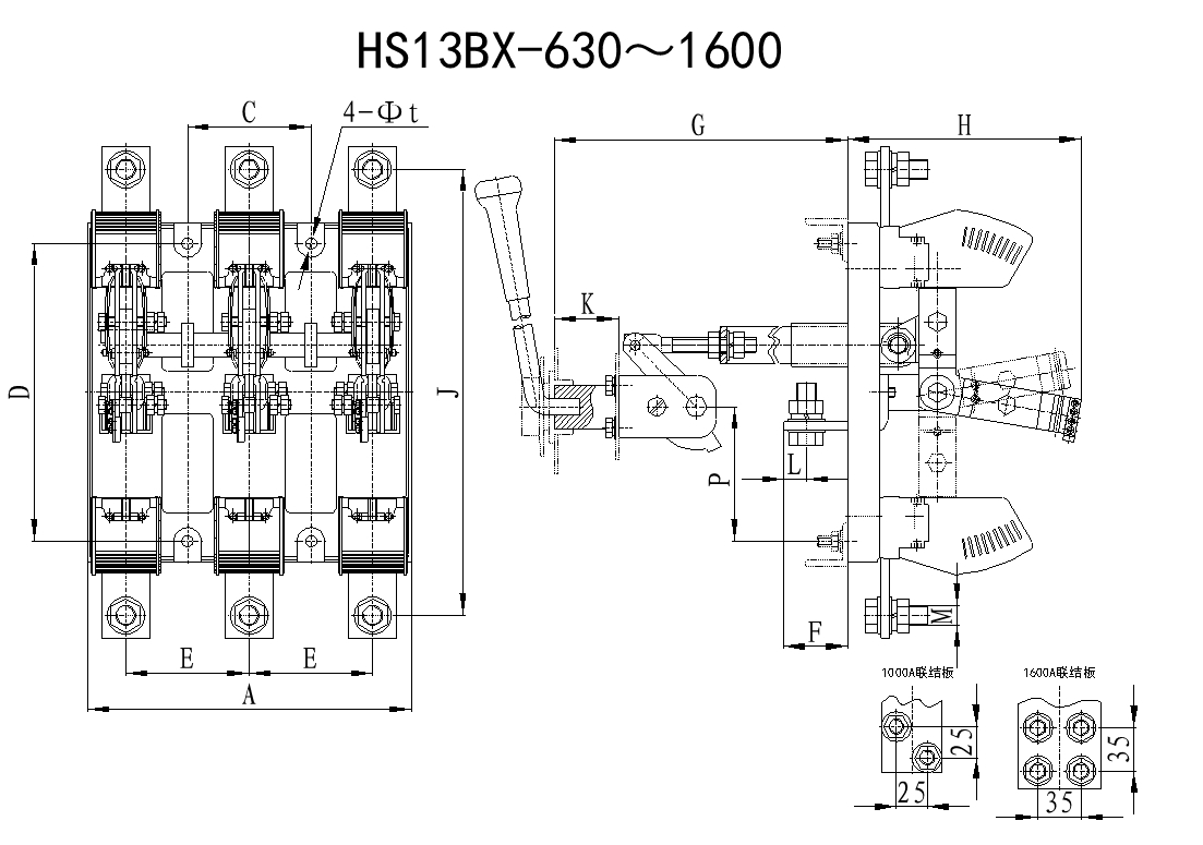 HS13B(BX)系列刀形轉換隔離器適用于額定工作電壓為交流400V,額定頻率50Hz,額定工作電流至1600A。主要用于工業(yè)企業(yè)的配電設備中,用于接通或分斷線路或者作為隔離開關之用。