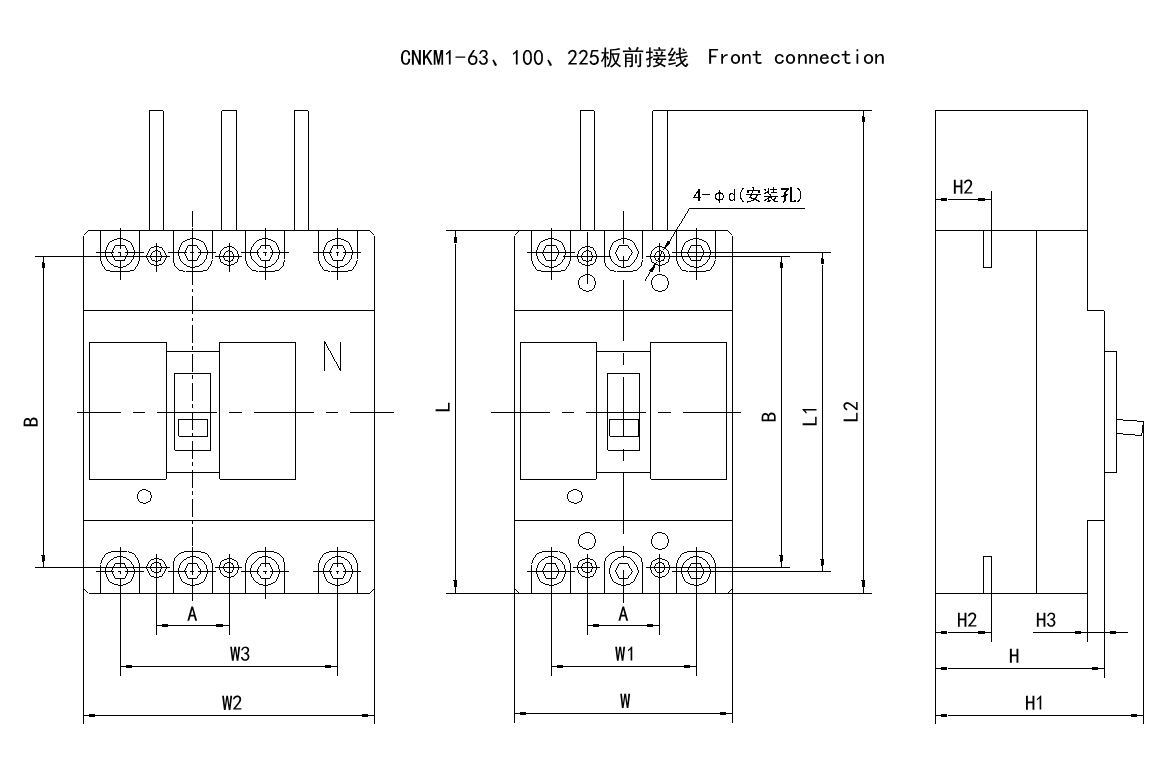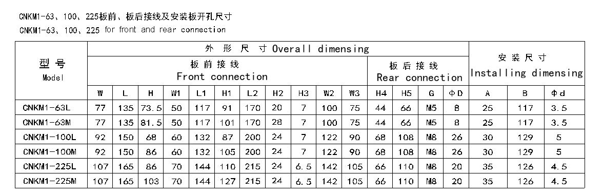 CNKM1系列塑料外殼式斷路器,額定絕緣電壓為800V,適用于交流50Hz,額定工作電壓交流400V,額定電流至630A的電路中,作不頻繁 接通、分斷配電電路或電動機電路。斷路器具有過載、短路和欠電壓保 護功能,能保護線路及電源設備不受損壞。